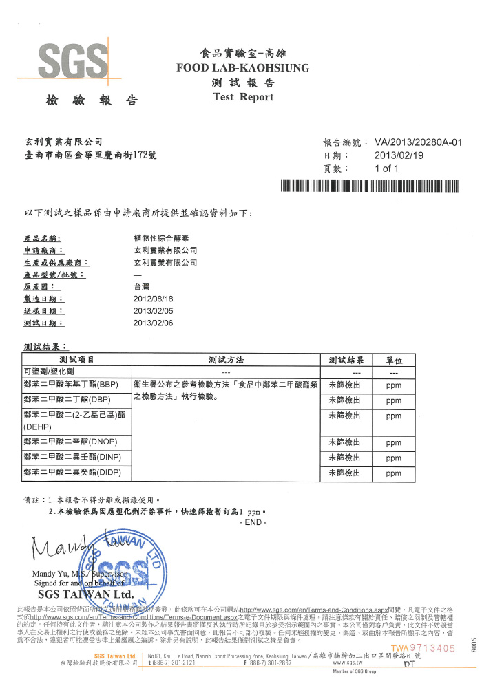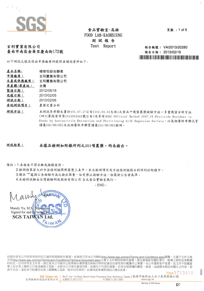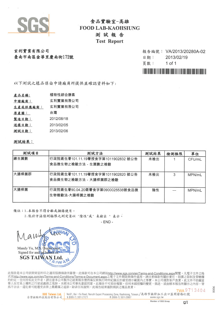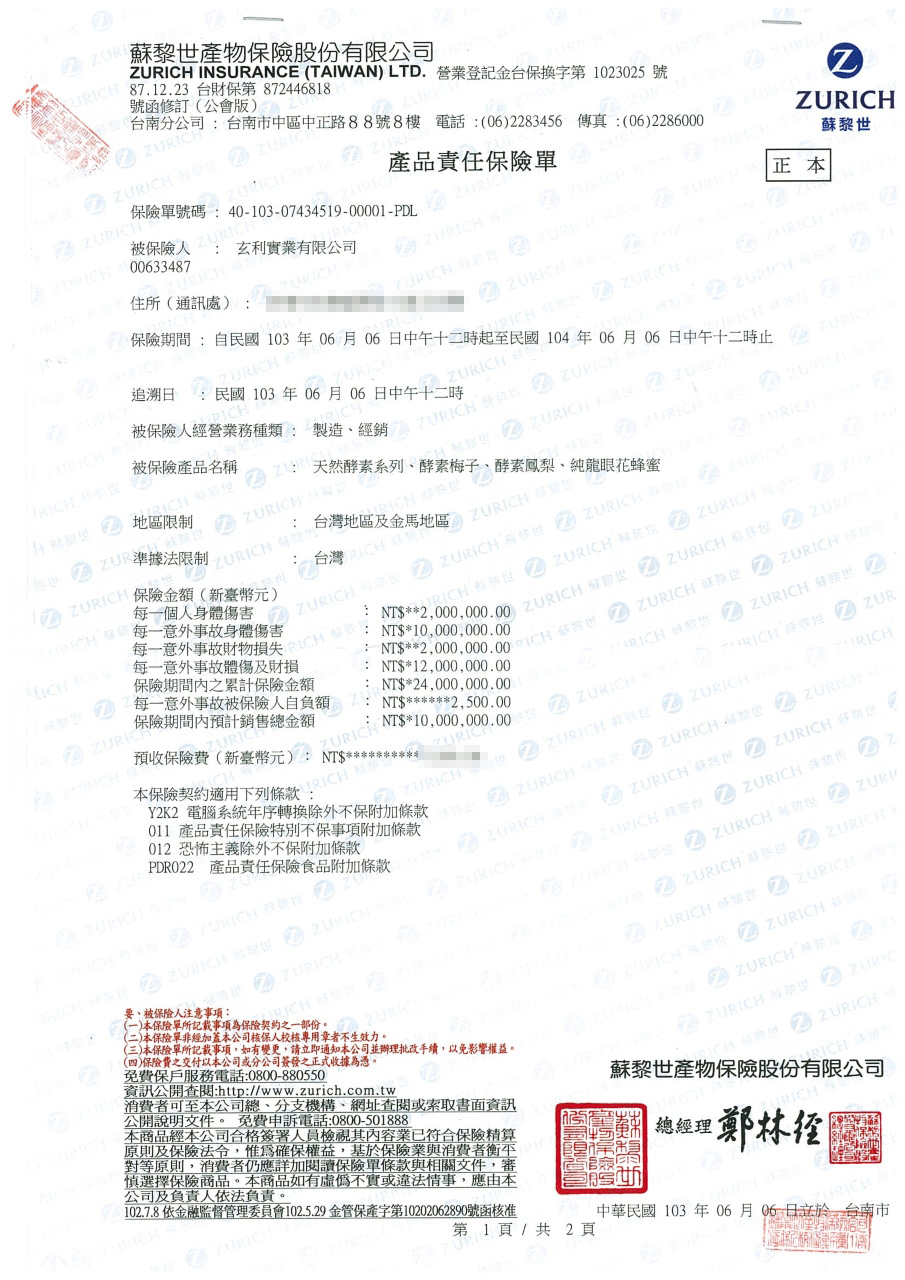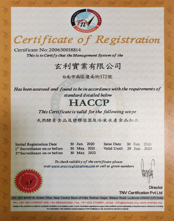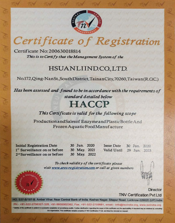 The factory is passed many inspections such as ISO 22000 (No. 140520048802), HACCP (No. 140520148801) and SGS. Besides, Zurich Insurance Company insures Zhen Enzyme for NT24, 000,000. Products are safe to eat.
